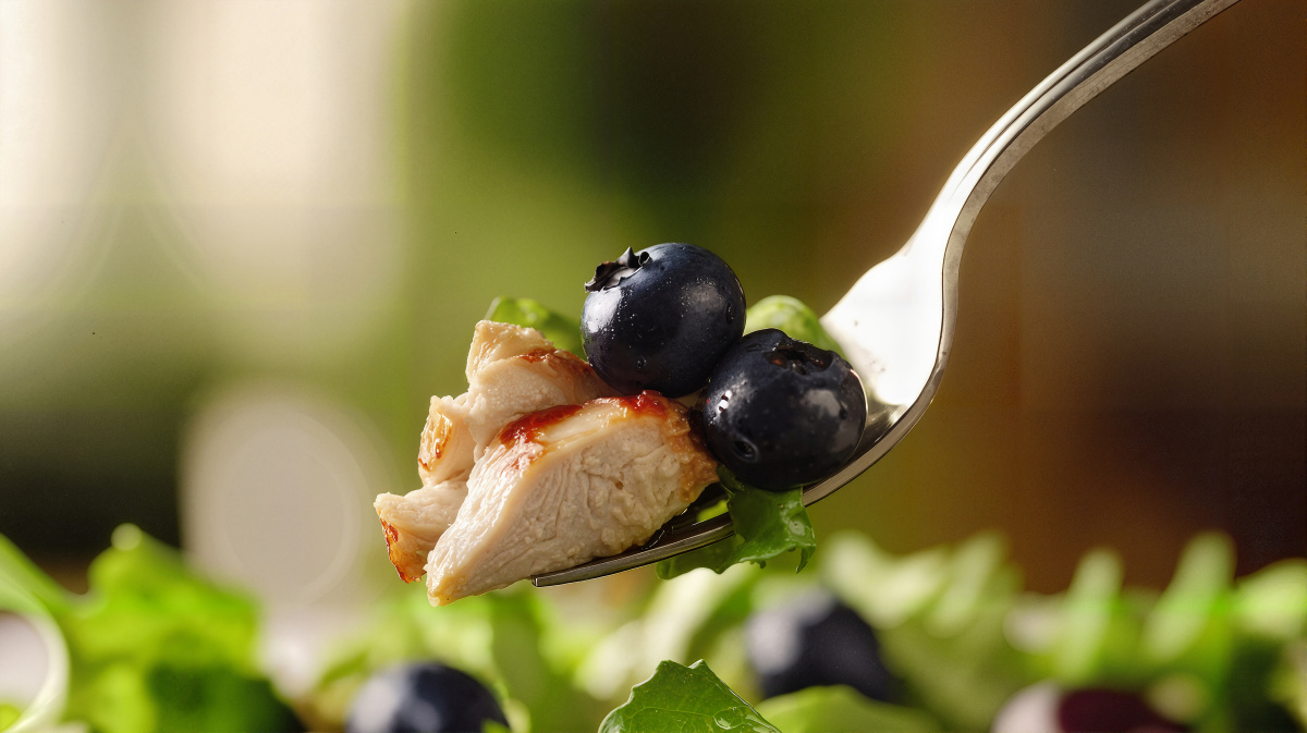 Салат с курицей и ягодами — отличный способ сочетать белок с клетчаткой и антиоксидантами