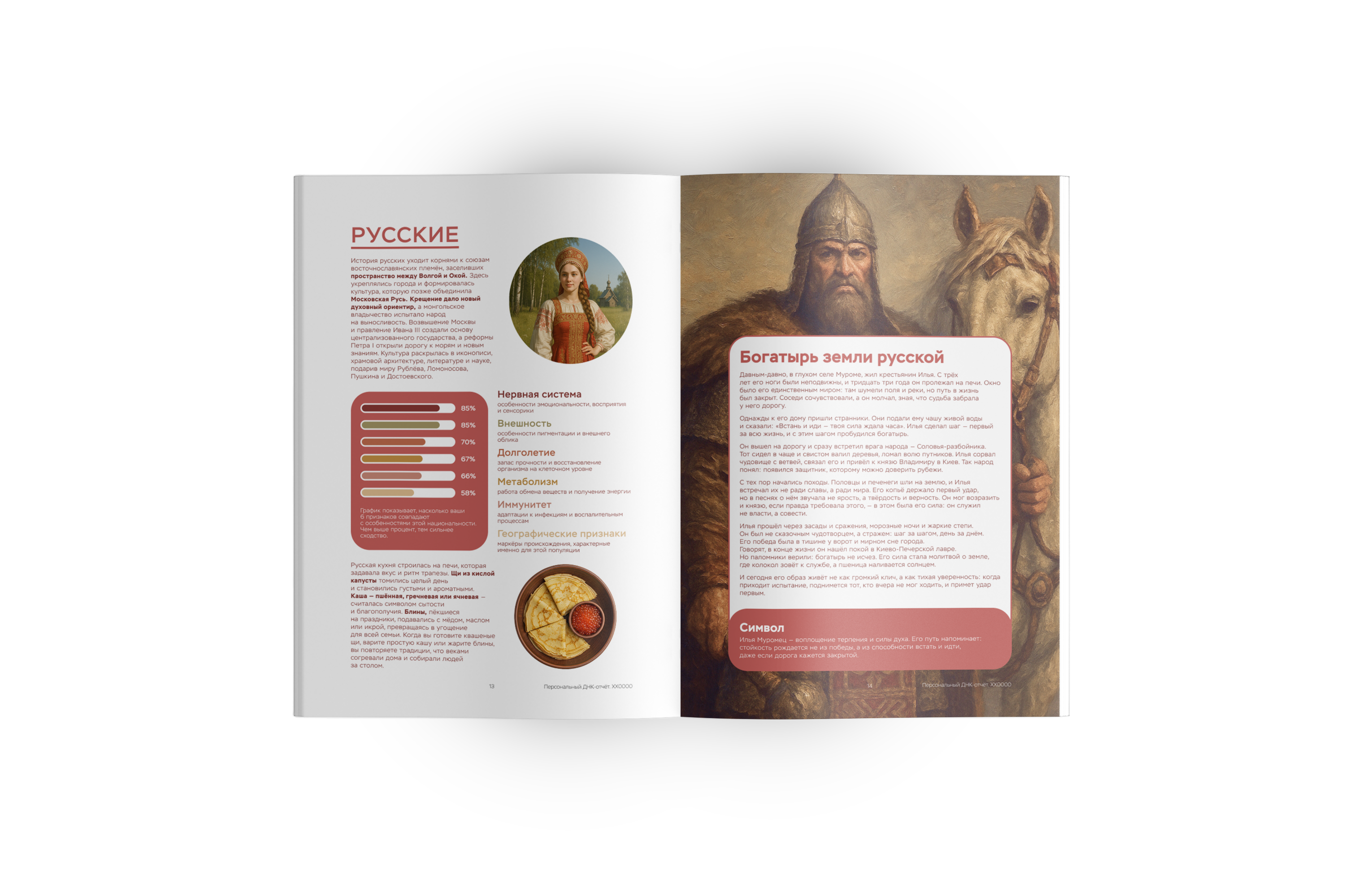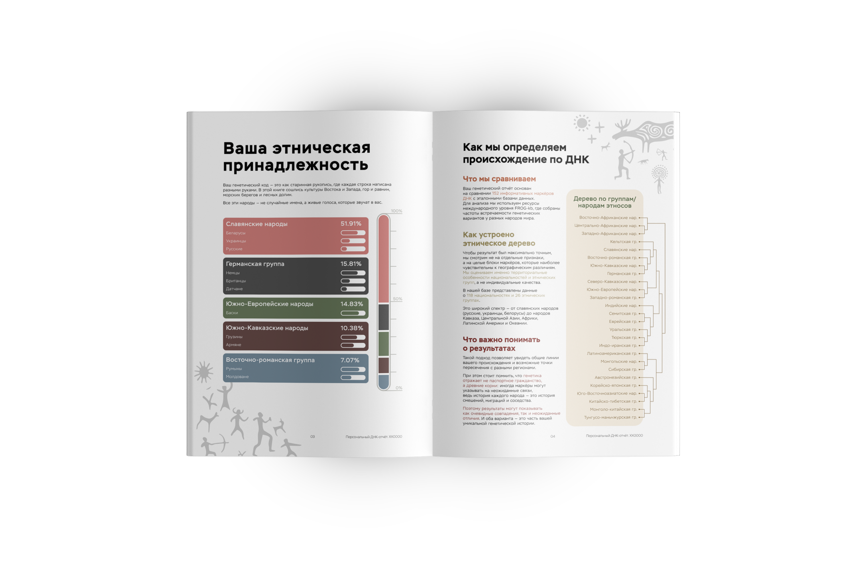Этот отчет помогает лучше понять свою идентичность, почувствовать связь с наследием семьи и получить научно выверенное объяснение того, что формировало ваш генетический код на протяжении тысячелетий.